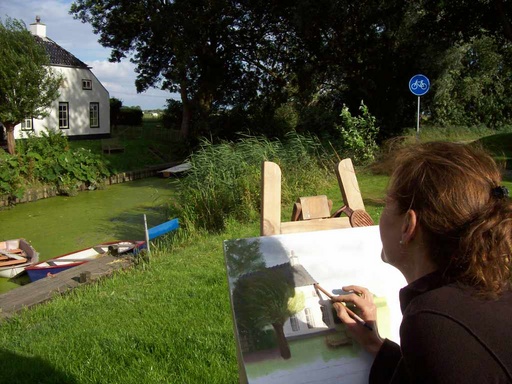 Na acht jaar olieverf vond ik het tijd voor een nieuwe techniek met ander materiaal. Aanleiding daarvoor was een schilderwedstrijd van Kleurenpalet, 'Landschap in de Achterhoek'. Het werk moest binnen 6 1/2 uur bij de jury ingeleverd zijn. Pastel is minder tijdrovend dan olieverf. Twee maanden voorafgaand aan de wedstrijd begon ik met pastelkrijt te oefenen. Landschap had ik ook nog nooit gedaan. Mijn inspanningen werden beloond met twee prijzen (zie Landschap in pastel).