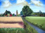 2007Binnen 6 1/2 uur moest het werk ingeleverd worden bij de jury van 'Kleurenpalet'. Dit stukje landschap heb ik uitgekozen vanwege het typisch Hollandse karakter. Het werk werd beloond met een 1e prijs.
